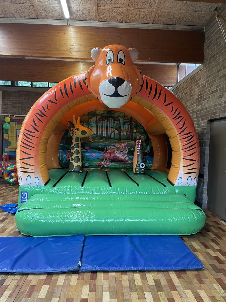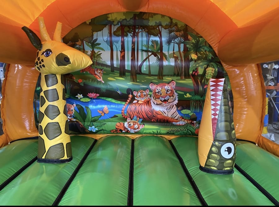 Looking for the ultimate centerpiece for your next event? The Jungle 12x12, 3D Bouncer is here to turn any celebration into an unforgettable adventure! With its impressive 12x12 3D tiger head, complete with bush and bash elements, this inflatable is a showstopper designed to captivate children and adults alike. Whether you're planning a birthday themed party or organising a summer fete, this bouncer promises exhilarating fun and endless laughter for everyone.