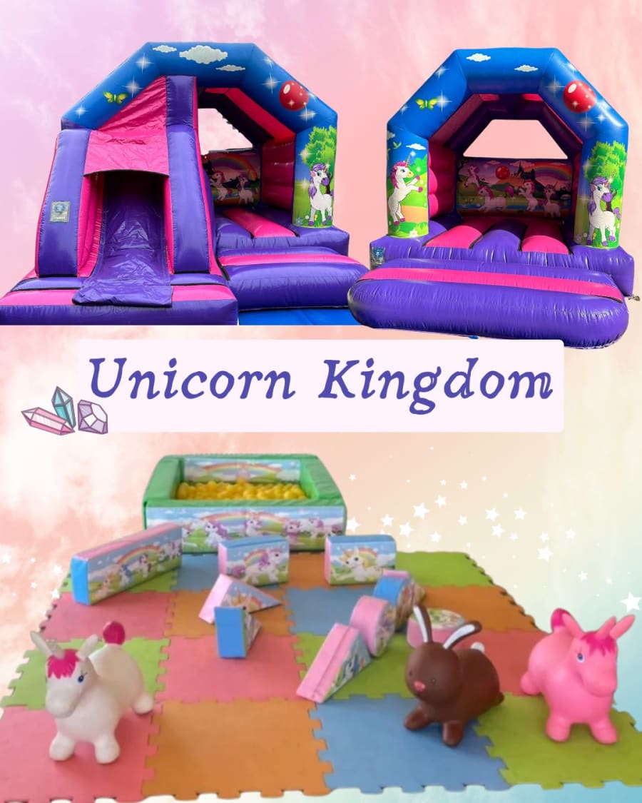 Bring magic to every event with the Unicorn Kingdom. Two beautiful unicorn castles arrive with matching soft play, hoppers and a colourful ball pond. Perfect for Birthday parties, Nursery open days and Weddings, this complete bouncy castle package hire turns ordinary gatherings into memorable celebrations. 🎉🦄